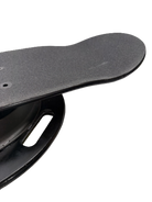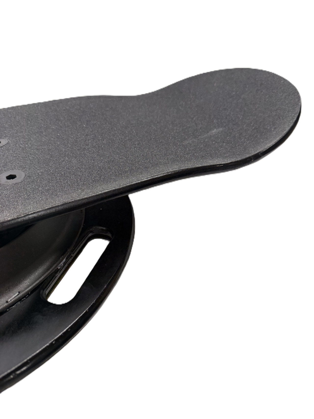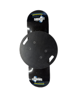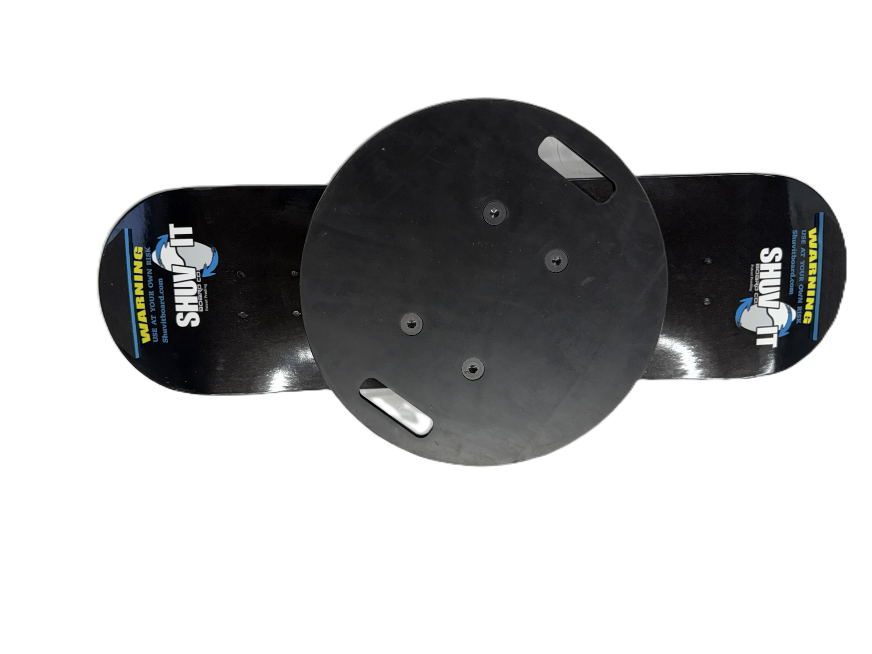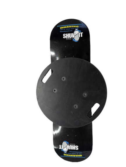 Skate ShuvIT has a large diameter base making it more stable than the PRO. The base contains hand-hole slots for easy carrying. The deck is 8.5in wide. The Skate ShuvIT is great to jump on inside or when your next to the vert ramp while waiting on your turn. If you want to learn some fancy foot work this board will allow you to practice on the grass, or carpet. The board rotates above a high capacity bearing that feels almost frictionless. The end of the board tilts to stop rotation when it touches the floor. Rotational motion is stable and consistent. Using a standard skate deck. The top contains standard skate board grip tape. It may seem a foreign to a skaters that are use to wheels, trucks, and a deck, but it is still cool and allows you to jump and spin and land in one place. Get one and you will ShuvIT & LoveIT.